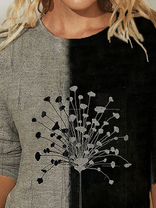 Floral Dandelions Print O-neck Casual T-Shirt